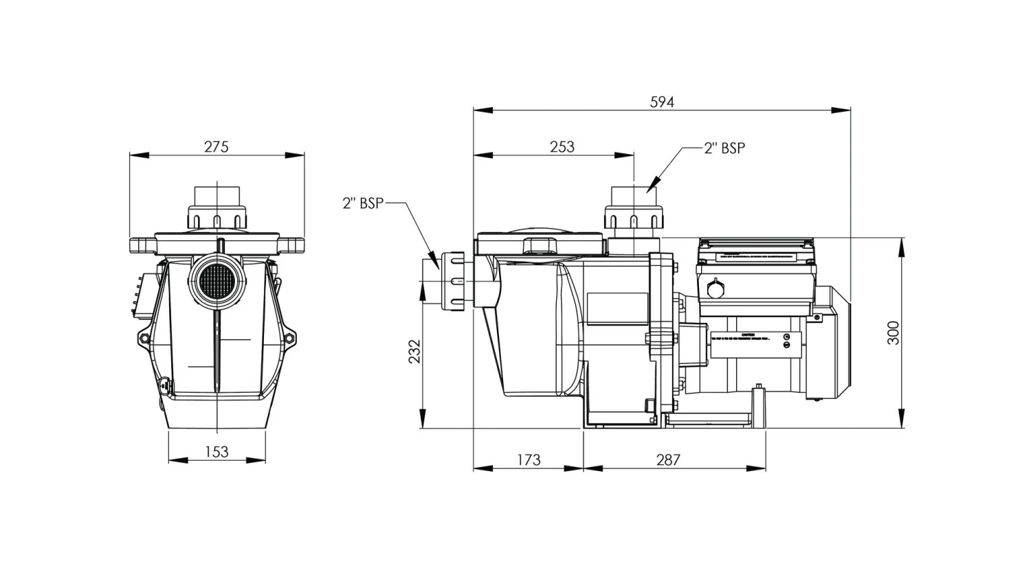 - De aanzuig-/persopening hebben een 2″ draadaansluiting