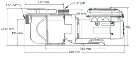 SuperFlo pomp combineert met een bijzonder efficiënte motor van 1,5 pk met een permanente magneet